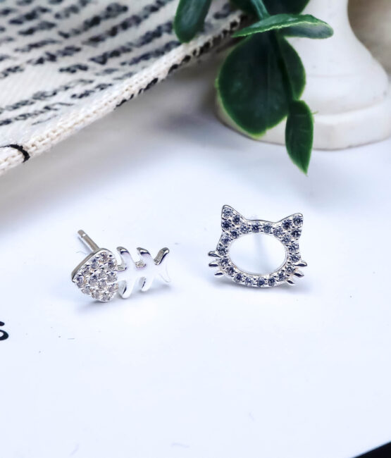 黑白穿搭配上銀色耳骨夾,與線條幾何耳環